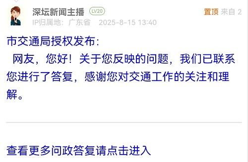各職能單位如需對網(wǎng)友反映的問題進行回應(yīng),可在深圳論壇注冊官方賬號并通過認證,回帖進行回應(yīng)。