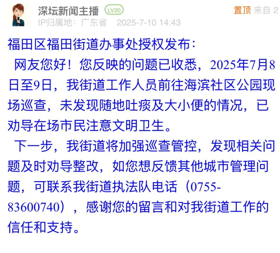 優(yōu)化建議:街道辦接到市民關(guān)于公園衛(wèi)生問題的反映后,到現(xiàn)場核查稱未發(fā)現(xiàn)相關(guān)情況,僅對在場市民進行文明勸導(dǎo)。但核查時段與問題高發(fā)期可能存在錯位,建議相關(guān)單位優(yōu)化接訴即辦機制,精準對接市民反映的高發(fā)時段。若投訴情況不實,相關(guān)部門可主動展示相關(guān)區(qū)域照片及巡查記錄,以可視化方式回應(yīng)市民關(guān)切,切實提升基層治理的透明度與公信力。