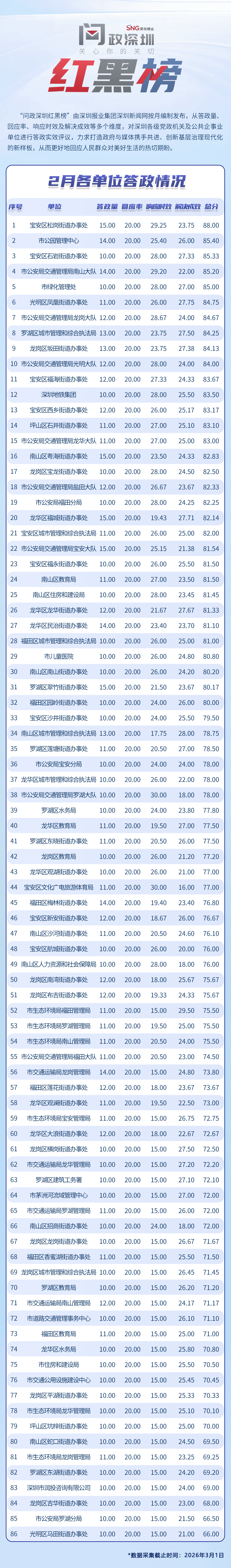 2026年2月,深圳各級黨政機(jī)關(guān)及公共企事業(yè)單位在“深圳論壇”答政情況如下: